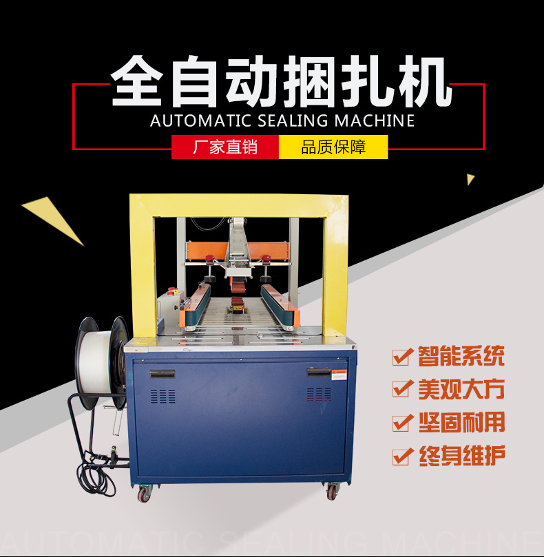 打包机是以聚乙烯塑料带为捆扎材料,主要用于商业、邮政、铁路、银行、食品、医药、书刊发行等行业的纸箱、纸包件、柳编箱、布包件的包装捆扎。
