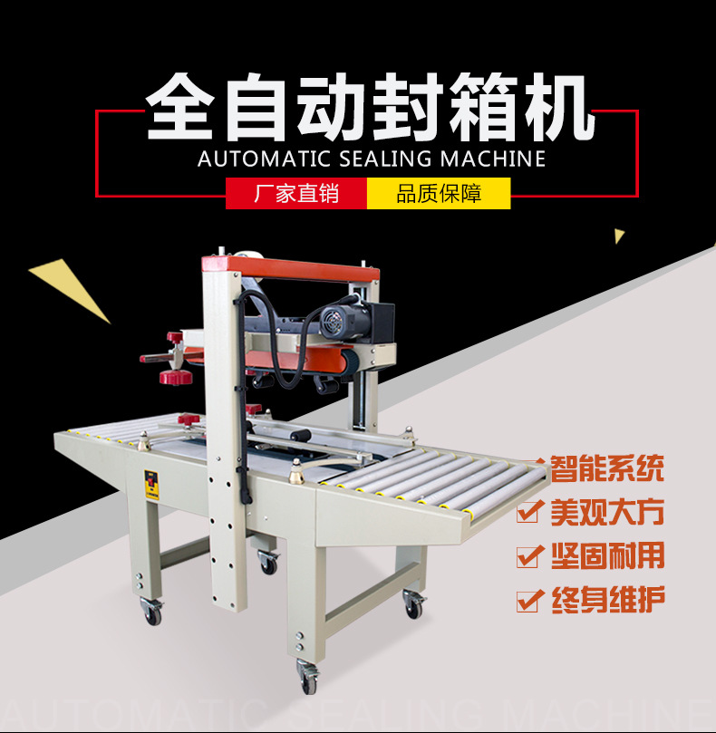 左右驱动封箱机两侧皮带驱动,采用即贴胶带封口,上下封箱,快速,平稳,且封箱效果平整、规范、美观 可根据纸箱规格,手工调节宽度与高度,简单,快捷,方便 可替代人工,提高高达30%的生产效率,节省5-10%耗材,是企业节省成本,提高生产效率,实现包装标准化的最好选择。