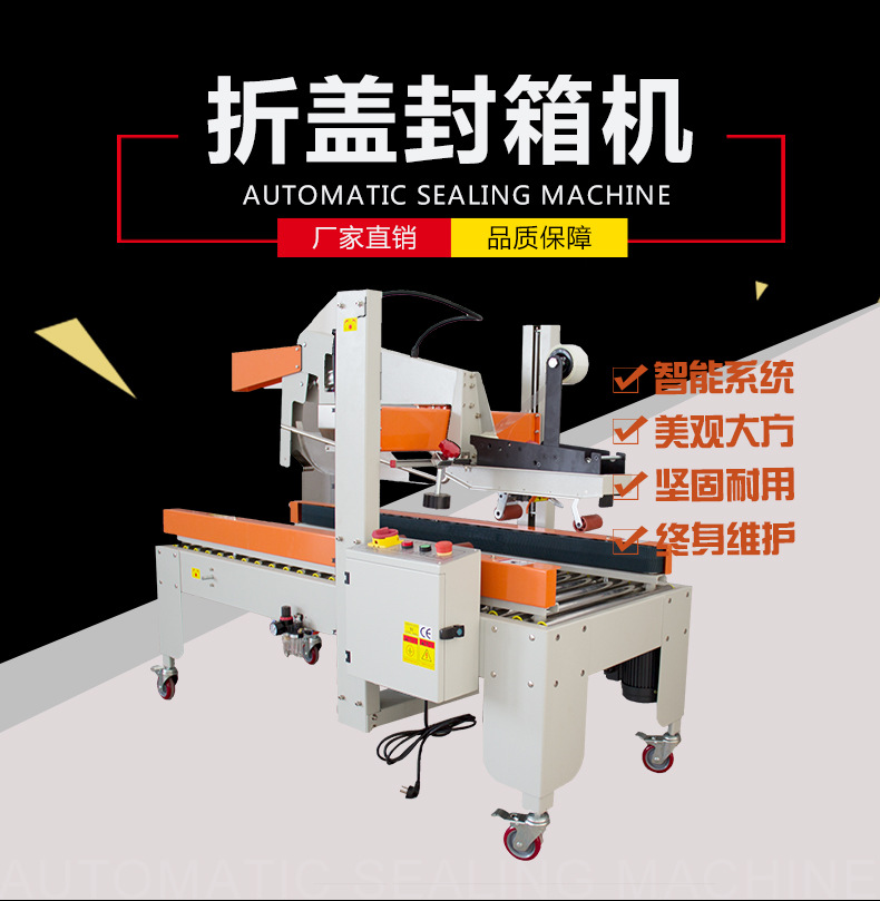 自动折盖封箱机,自动折上盖,上下自动贴上胶带,无需人手作业;采用即贴胶带纸箱封口,封箱效果平整、规范、美观,封口更牢固,配套自动化包装流水线使用将更能体现此机价值,是自动化包装企业的首选。